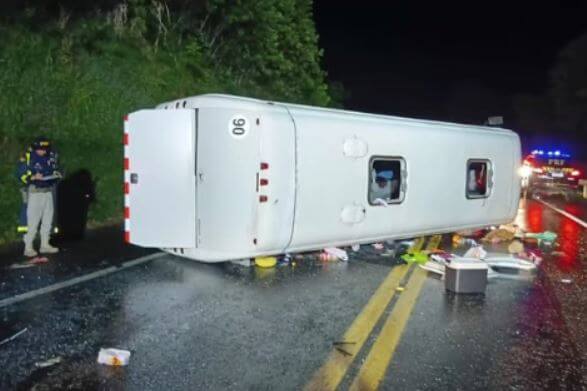 Um grave acidente envolvendo um ônibus de turismo foi registrado na noite de quinta-feira (12), por volta das 20h21, no km 255 da BR-277, em Irati, na região Centro-Sul do Paraná. O veículo fazia o trajeto entre Balneário Camboriú (SC) e Assunção, no Paraguai.