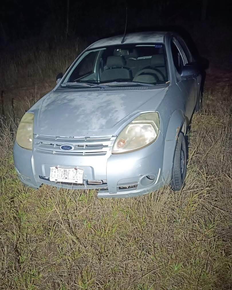 De acordo com informações repassadas pela equipe policial, por volta das 20h21 os agentes foram acionados após a denúncia de que um Ford Ka, de cor prata, com placas argentinas, estaria abandonado em meio a um matagal.