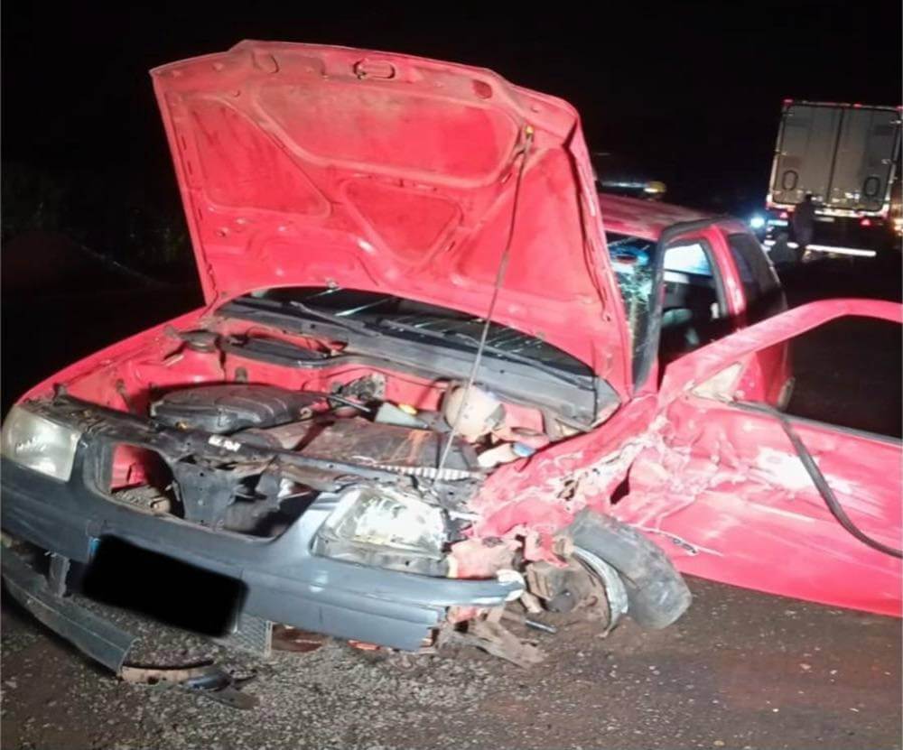 Um homem ficou ferido após uma colisão entre um VW Gol e um caminhão na noite desta quarta-feira (22), na PR-180, no sentido Francisco Beltrão–Dois Vizinhos.