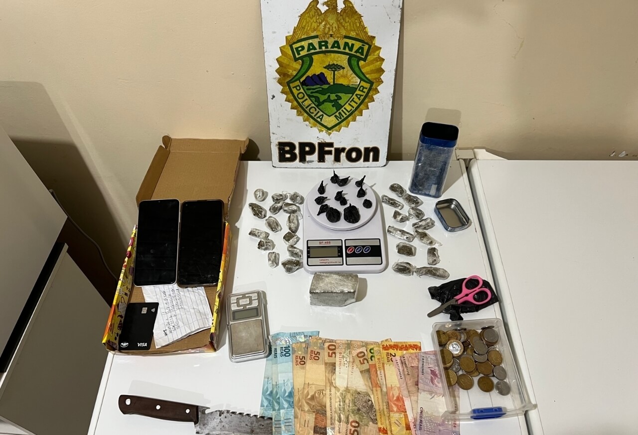 Na residência foram localizadas várias porções de maconha, cocaína, duas balanças de precisão, dinheiro em espécie, aparelho celular, vários papelotes para embrulhar a droga e uma faca.