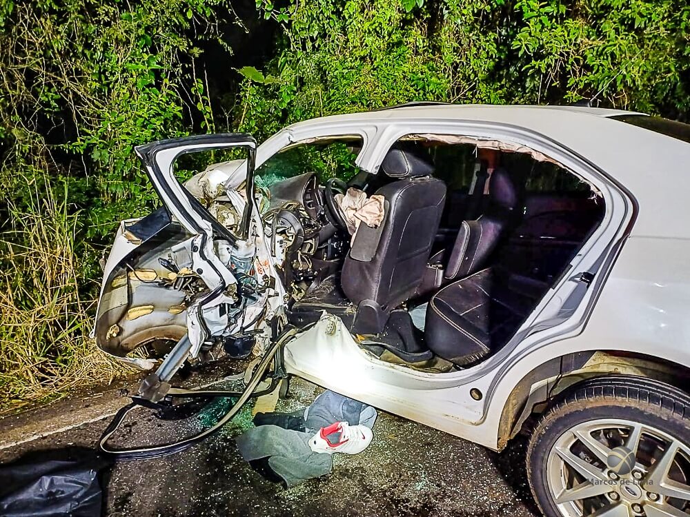 O condutor do Ford/Fusion seguia no sentido Maravilha/São Miguel do Oeste quando acabou colidindo com o veículo que vinha no sentido oposto.