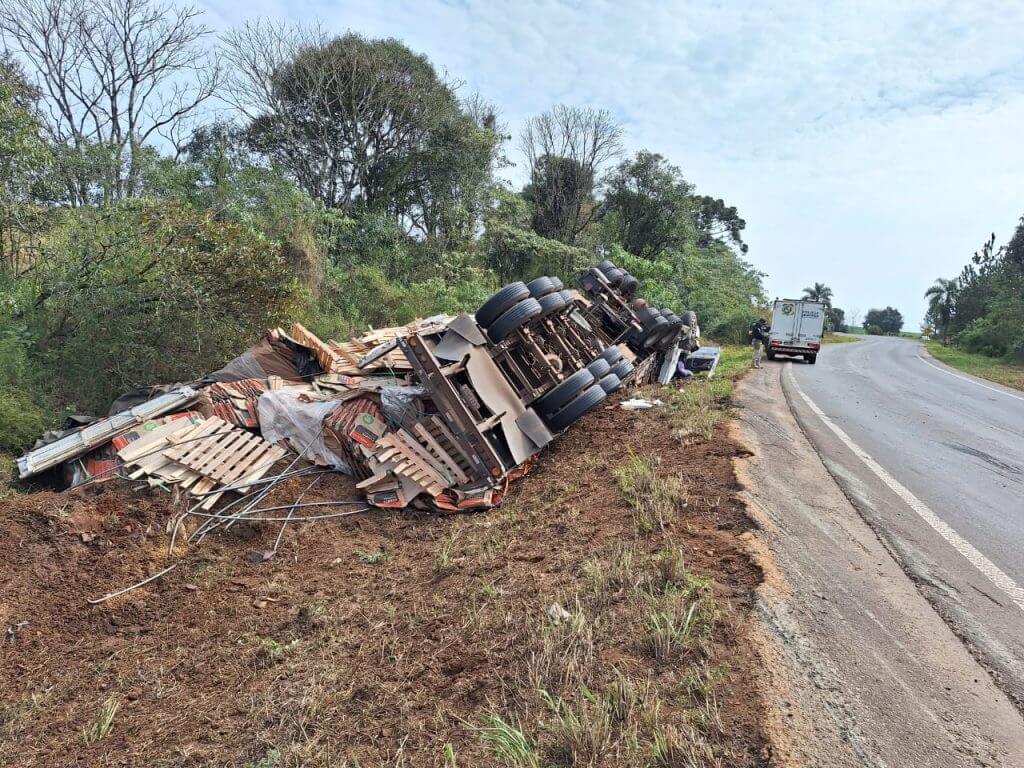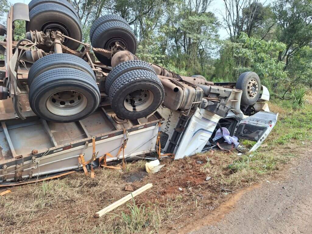 Um caminhoneiro argentino perdeu a vida após o veículo que conduzia capotar na BR-280, nas proximidades do radar na Comunidade de KM 15, em Marmeleiro.