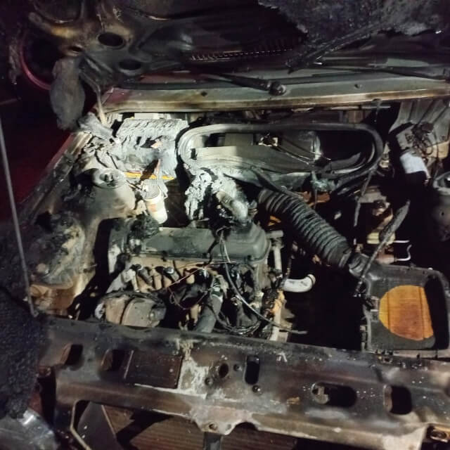 Conseguiram abrir uma pequena fenda no capô para começar a extinguir as chamas e, em seguida, realizaram a abertura total para completar o trabalho e fazer o rescaldo.