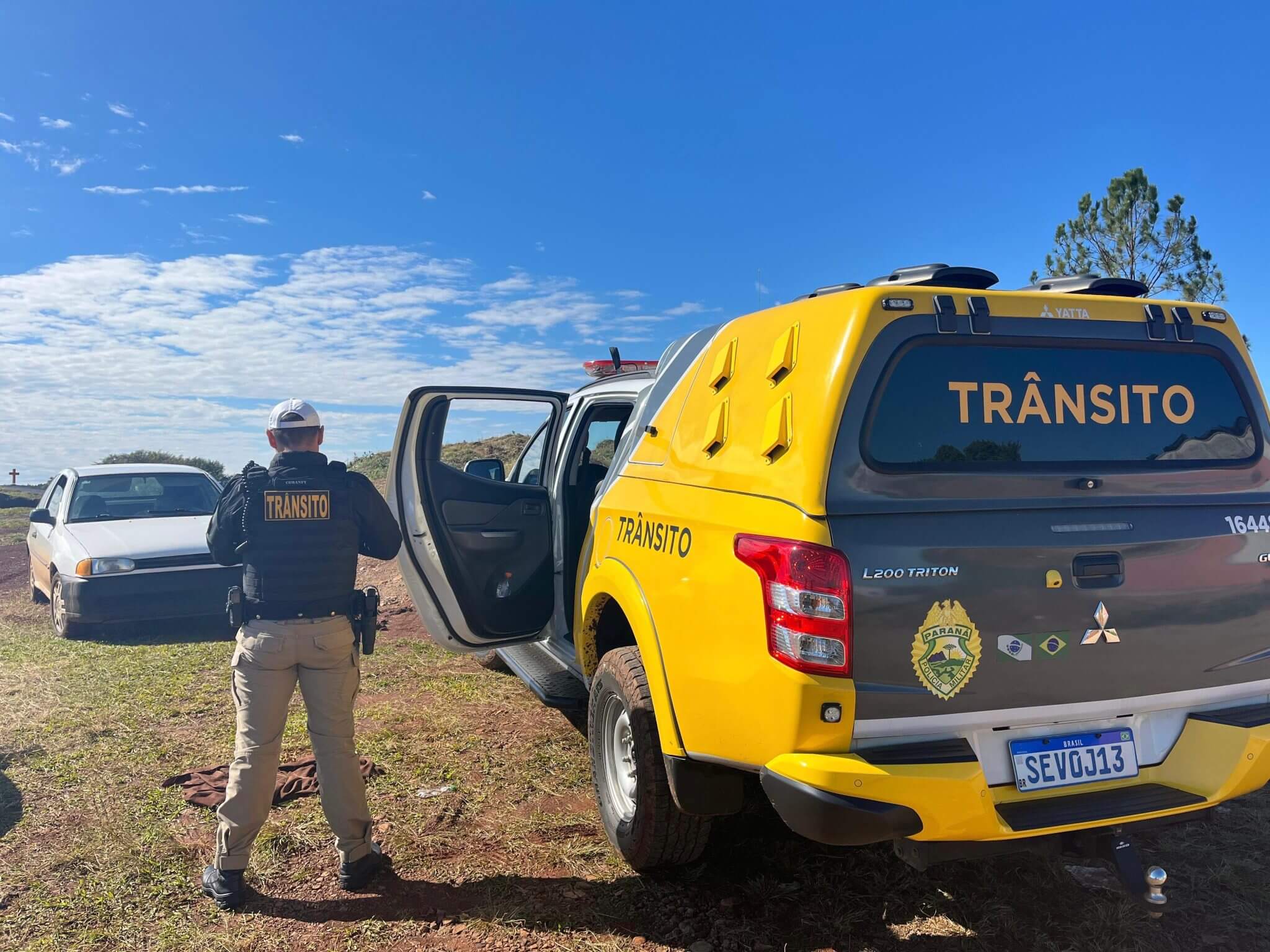A equipe do Pelotão de Policiamento de Trânsito recebeu informações nesta terça-feira (1) de que um veículo VW/Gol que havia sido furtado durante a madrugada teria colidido com uma motocicleta e, em seguida, evadindo-se em direção ao bairro Padre Ulrico.