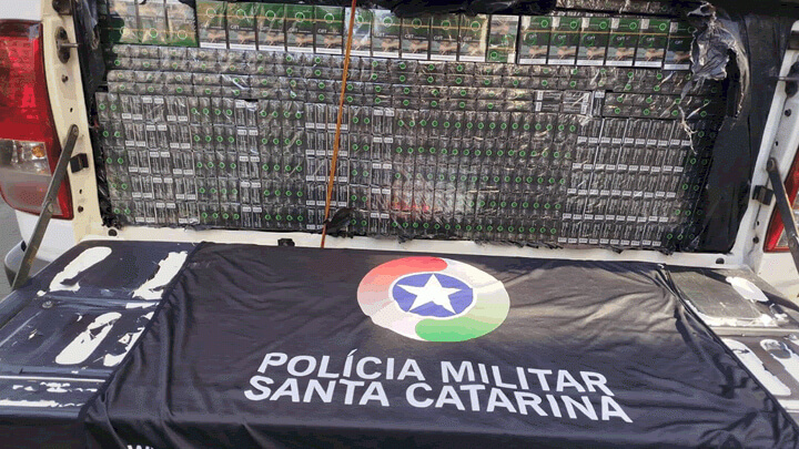 Uma operação integrada das forças de segurança resultou na apreensão de cerca de 27.500 maços de cigarros contrabandeados do Paraguai. A ocorrência foi registrada por volta das 9h da manhã desta quarta-feira (2), na BR-158, no entroncamento com a SC-283, em Palmitos, Oeste de Santa Catarina.