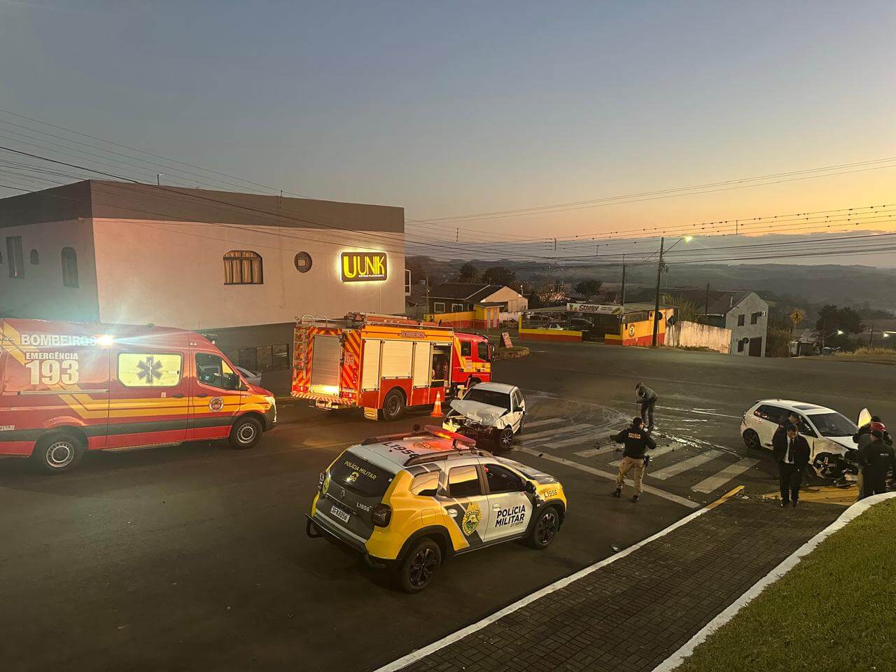 Um acidente de trânsito envolvendo dois veículos mobilizou equipes de resgate na manhã desta quinta-feira (10), na Rua Arnaldo Busato, em Barracão (PR). A ocorrência foi registrada por volta das 6h47 e atendida pelo 12° Batalhão de Bombeiros Militar de Dionísio Cerqueira, com apoio do SAMU.