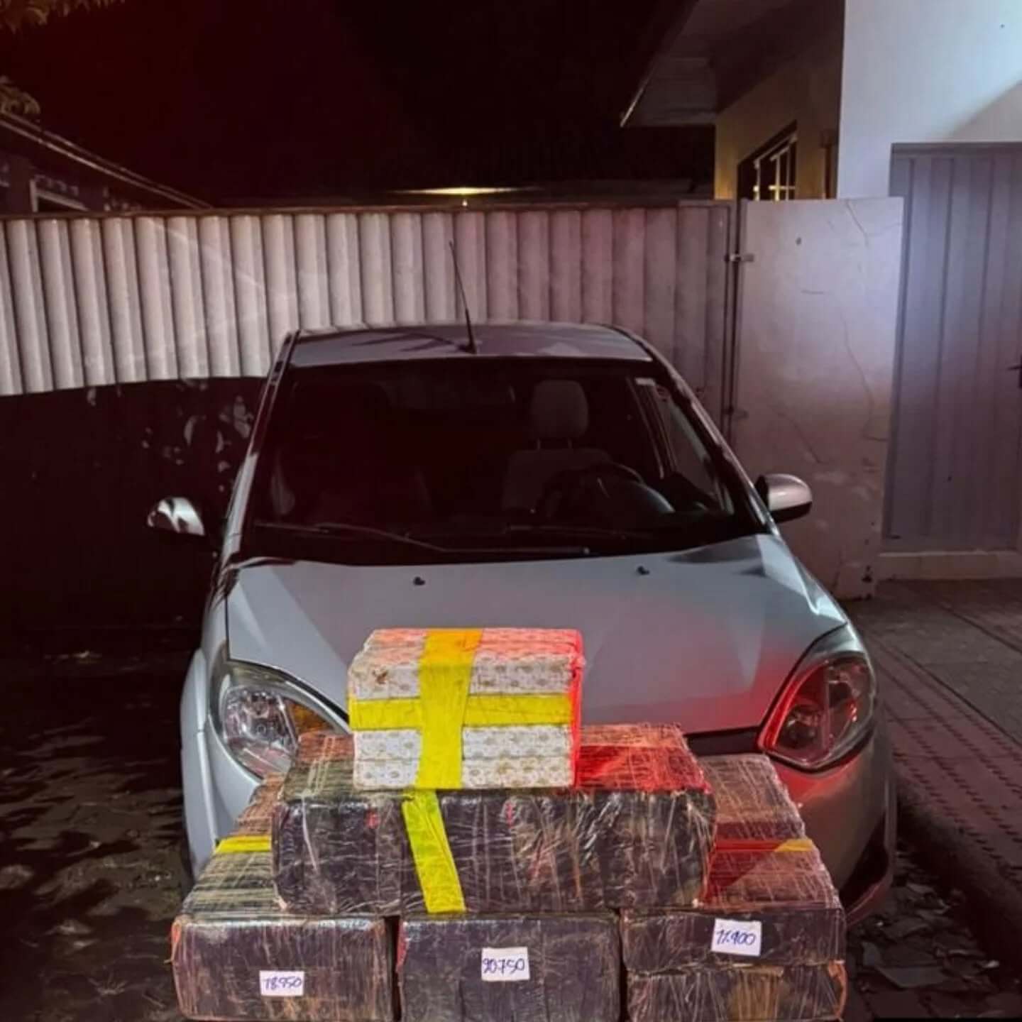 O automóvel utilizava placas clonadas e, no porta-malas, foram localizados outros pares de placas semelhantes. Conforme apurado, o Fiesta é registrado em Dois Irmãos (RS), mas circulava com a identificação de outro carro.
