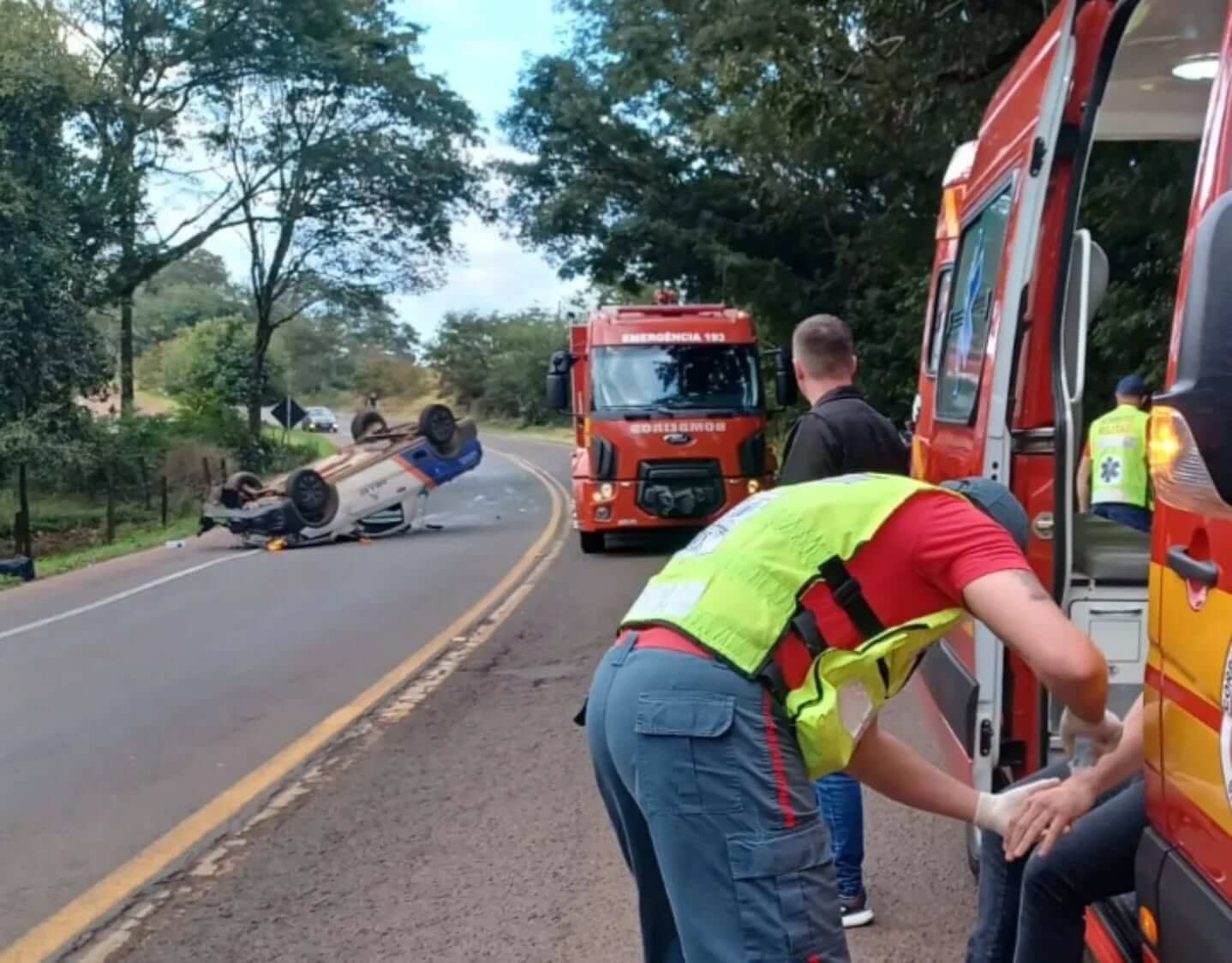 Segundo informações preliminares, a Saveiro colidiu lateralmente com o Corolla e, na sequência, capotou sobre a pista. O trânsito ficou lento durante o atendimento e precisou ser desviado por vias alternativas na comunidade.