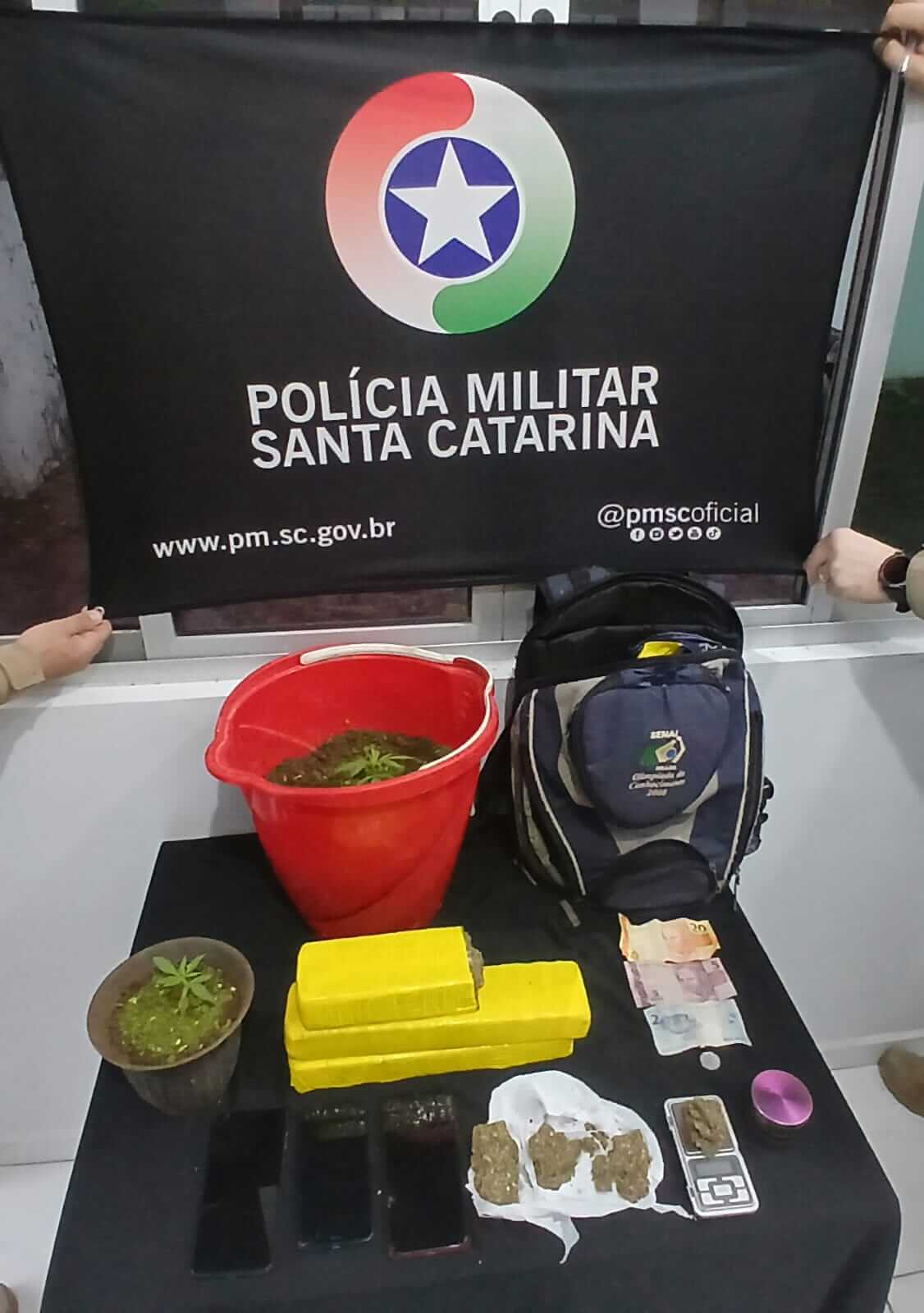 No local, foram apreendidas porções adicionais de maconha, duas plantas da droga, uma balança de precisão, um esmurrugador e um aparelho celular. As residências, situadas no mesmo terreno, foram vistoriadas com o consentimento dos responsáveis.