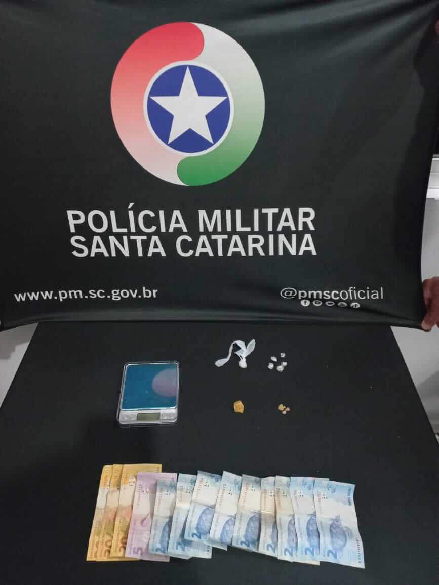 No veículo, ao lado do banco do passageiro, foi localizada outra pedra de crack de 1,7 grama, também destinada à venda. Com base nas informações obtidas, a guarnição seguiu até a residência do casal, onde encontrou uma balança de precisão com resquícios de crack e mais quatro pedras sobre a geladeira, totalizando 6 gramas. Na residência estava ainda um homem de 23 anos, com diversas passagens policiais e mandado de prisão ativo por tráfico, que foi conduzido à Unidade Prisional Avançada de São Miguel do Oeste.