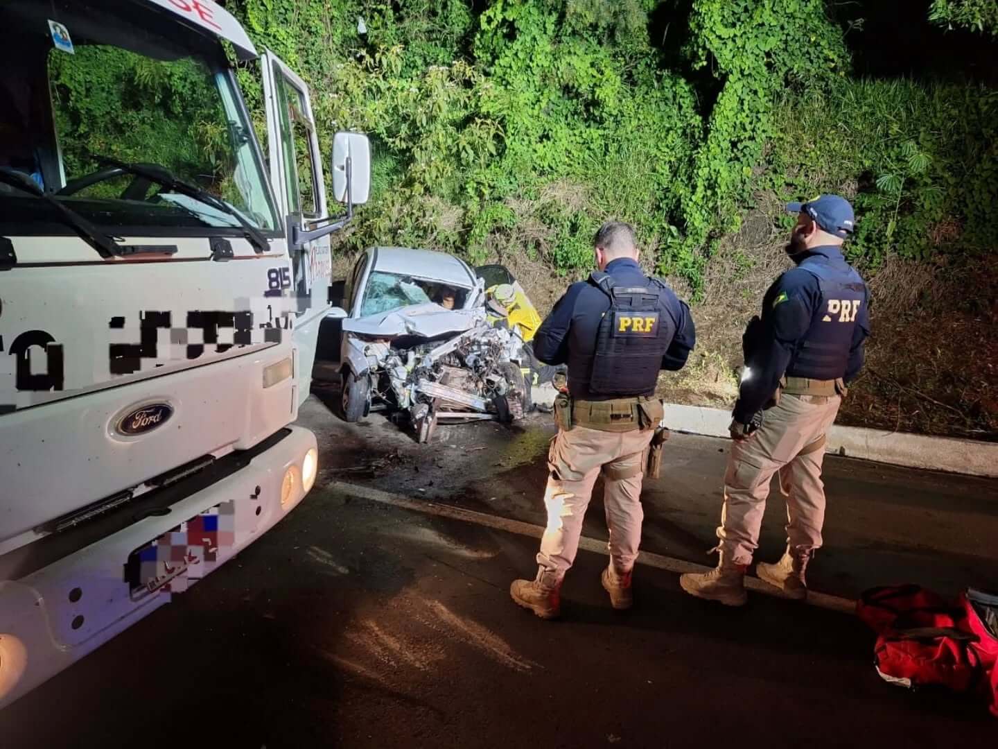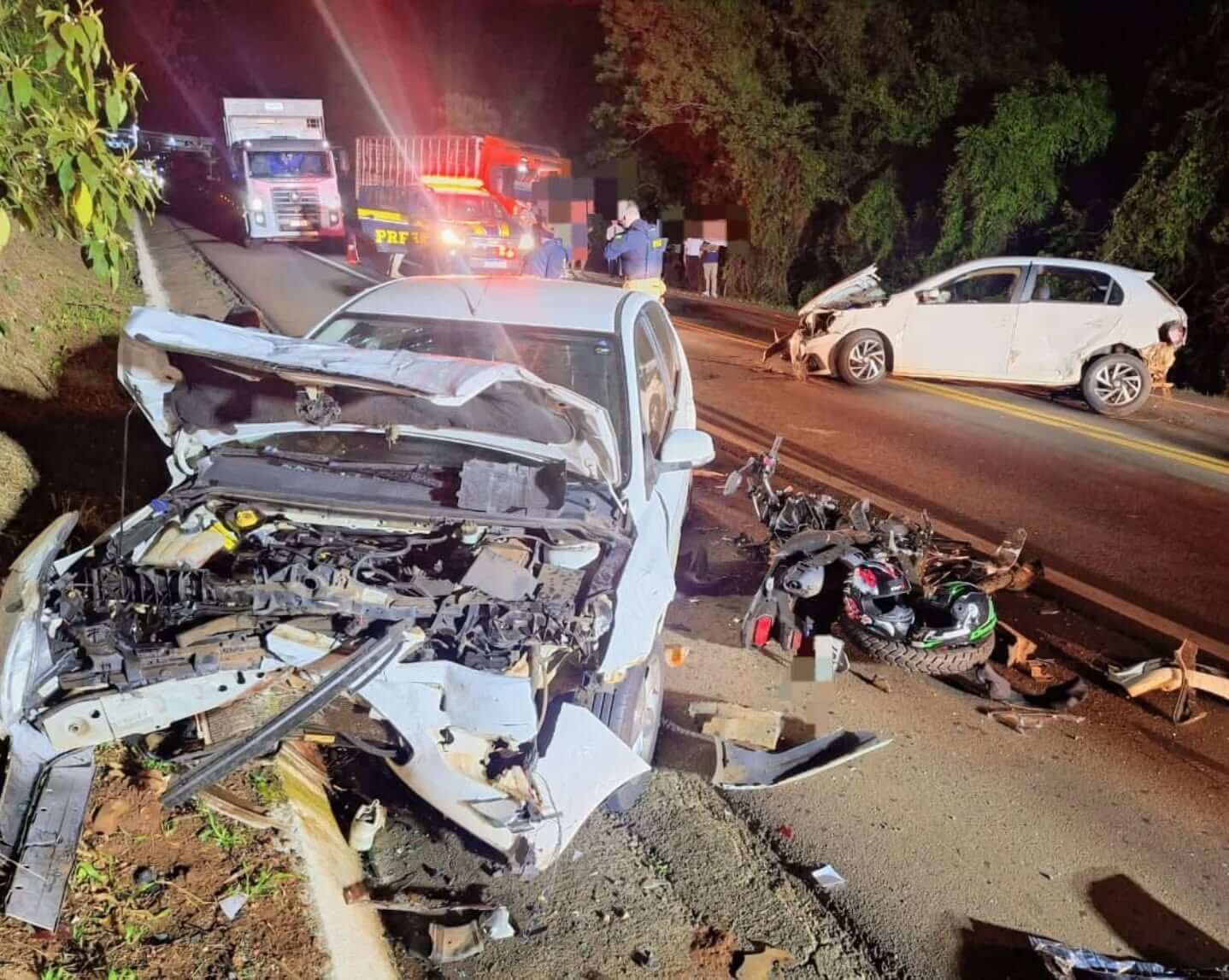Um grave acidente de trânsito foi registrado por volta das 20h55 deste domingo (2), no km 510 da BR-282, no interior de Xanxerê. A colisão envolveu três veículos, um Focus, um Gol e uma motocicleta, e resultou na morte de duas pessoas.