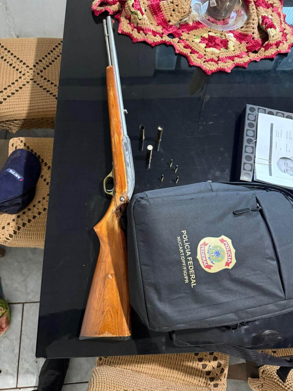 A apuração também indica envolvimento com rinhas de galo, além da criação e treinamento de aves para combates com apostas, inclusive com possíveis conexões internacionais. Ainda conforme a investigação, o grupo estaria ligado ao tráfico de drogas, com negociações envolvendo a venda e transporte de maconha, além do comércio ilegal e posse de armas de fogo, como espingardas, rifles e pistolas, usadas tanto na caça quanto para proteção das atividades criminosas.