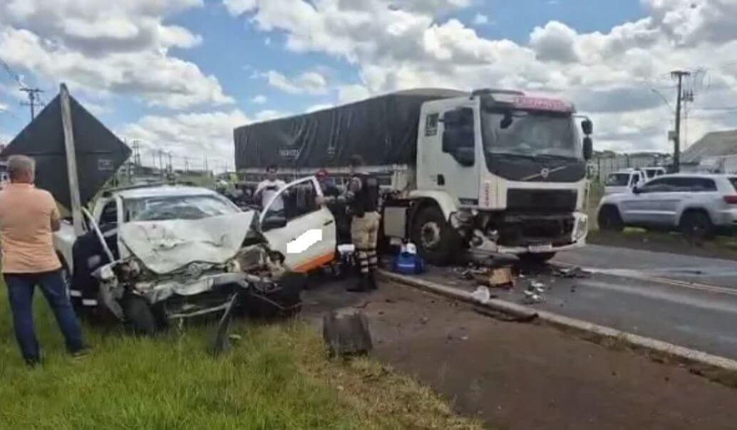 Um sinistro de trânsito envolvendo uma camionete VW/Saveiro e um caminhão Volvo truck foi registrado no início da tarde de quarta-feira (20), na rodovia BR-158, no perímetro urbano de Pato Branco (PR).