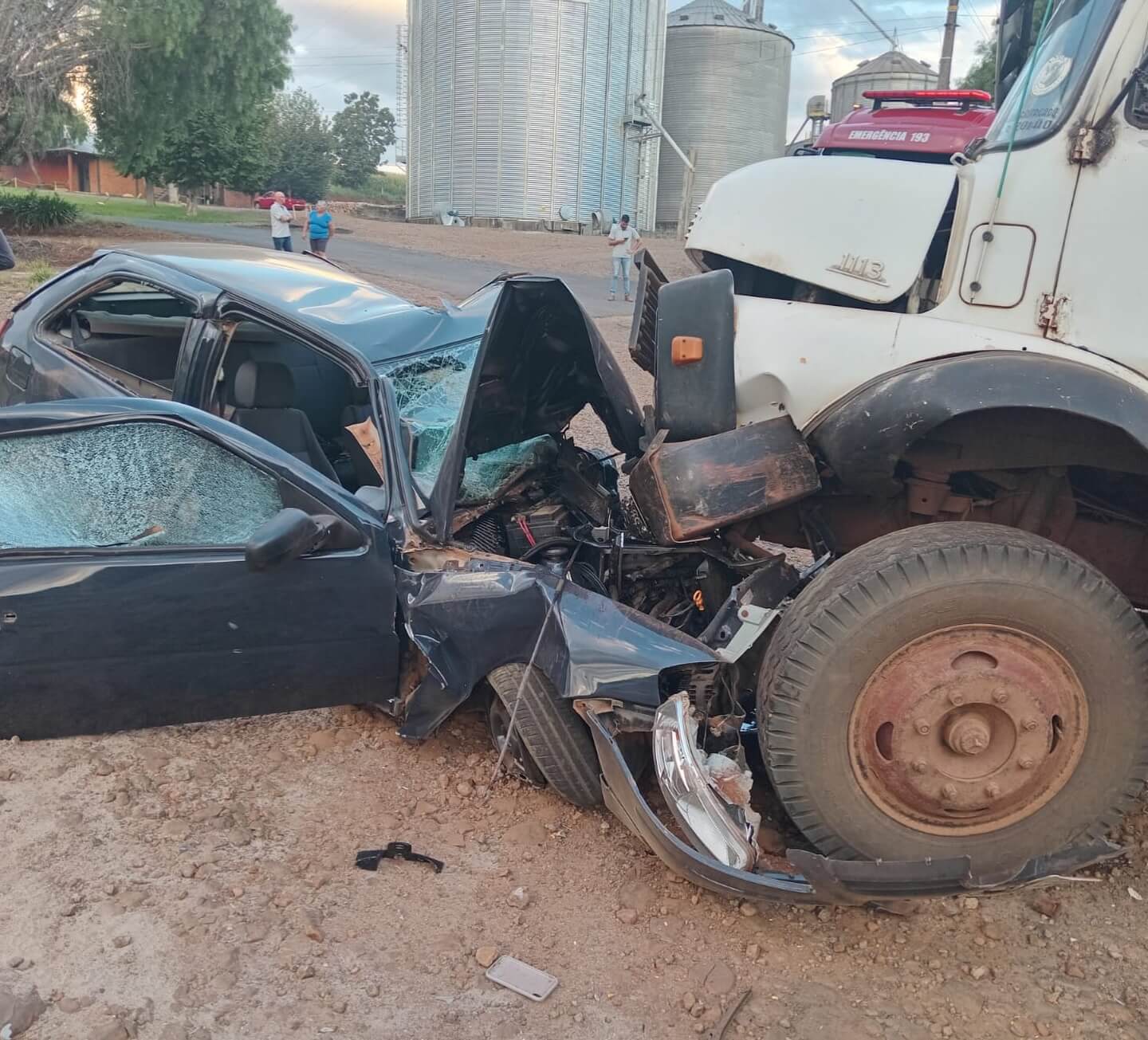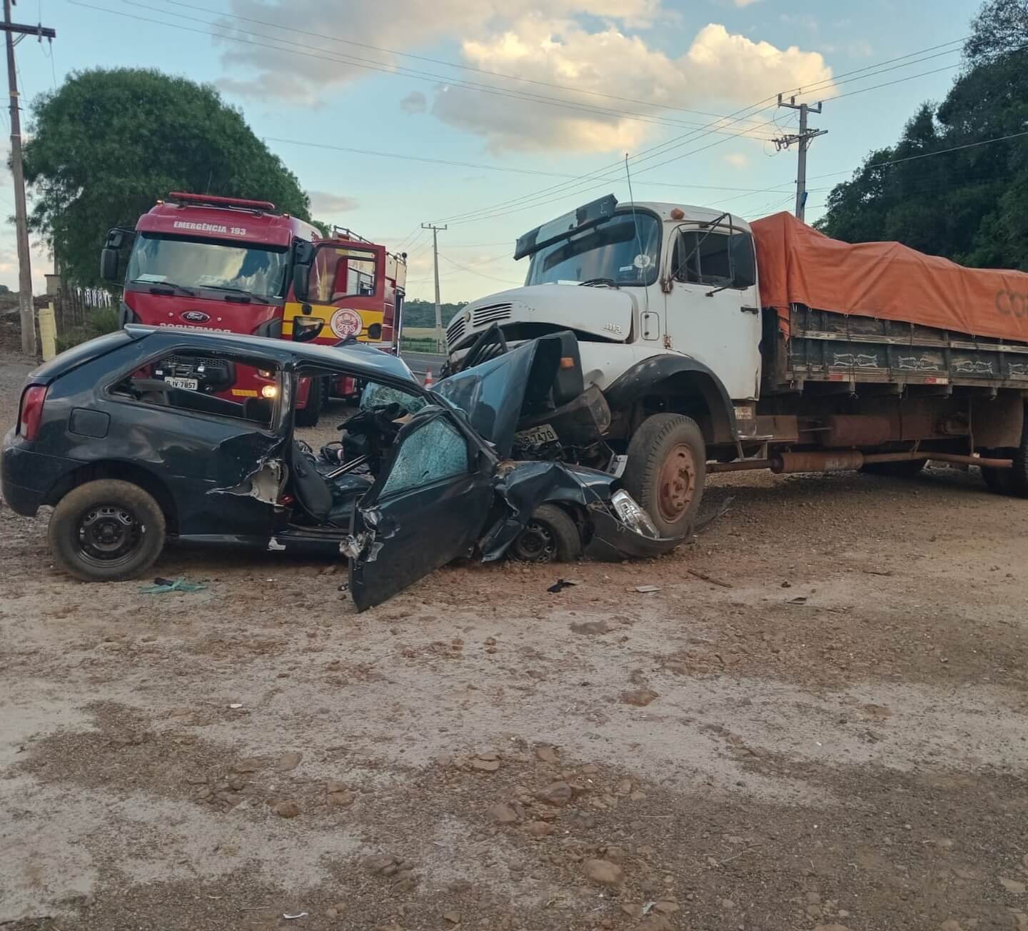 Os bombeiros abriram a porta do lado do passageiro para retirá-lo primeiro e na sequência realizaram expansão do painel para liberar o condutor. Ambos foram retirados seguindo protocolo de imobilização em ângulo controlado para evitar agravamento das lesões. O motorista foi colocado em maca rígida e conduzido à Clínica Santa Paulina para avaliação médica. O passageiro também foi encaminhado para atendimento. A pista estava seca com sinalização preservada e limite de velocidade de 60 km/h. O automóvel teve danos de grande monta e o caminhão danos de pequena monta. As circunstâncias do sinistro deverão ser apuradas pelas autoridades competentes.
