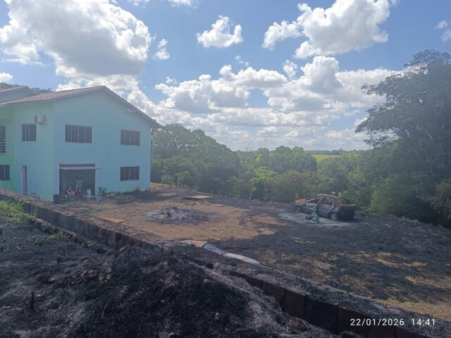Ao chegar no local, proximidades da Terra Viva, a guarnição de bombeiros realizou o dimensionamento da cena, com avaliação dos riscos existentes. Foi constatado que o incêndio se encontrava em fase de desenvolvimento completo, em um veículo e na área de vegetação rasteira, próxima a uma edificação residencial.