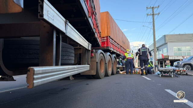 Um motociclista foi resgatado após sofrer um grave acidente no fim da tarde desta segunda-feira (26), na Avenida Willy Barth, em São Miguel do Oeste. Ele caiu sob uma carreta bitrem e acabou sendo arrastado por cerca de 10 metros. Equipes do Corpo de Bombeiros e do SAMU foram acionadas e prestaram atendimento no local. O motociclista estava consciente e orientado, mas apresentava ferimentos generalizados. A motocicleta ficou presa sob o rodado da carreta.