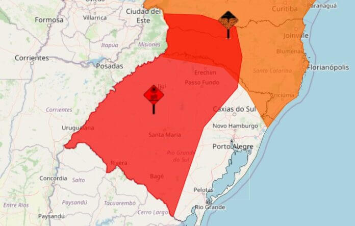 O alerta vermelho vale até a próxima sexta-feira (6) e abrange mais de 500 municípios do Sul do país. As principais áreas atingidas serão as regiões oeste e norte de Santa Catarina; sudoeste, noroeste, nordeste e centro do Rio Grande do Sul; e as regiões sudoeste, centro e sudeste do Paraná.