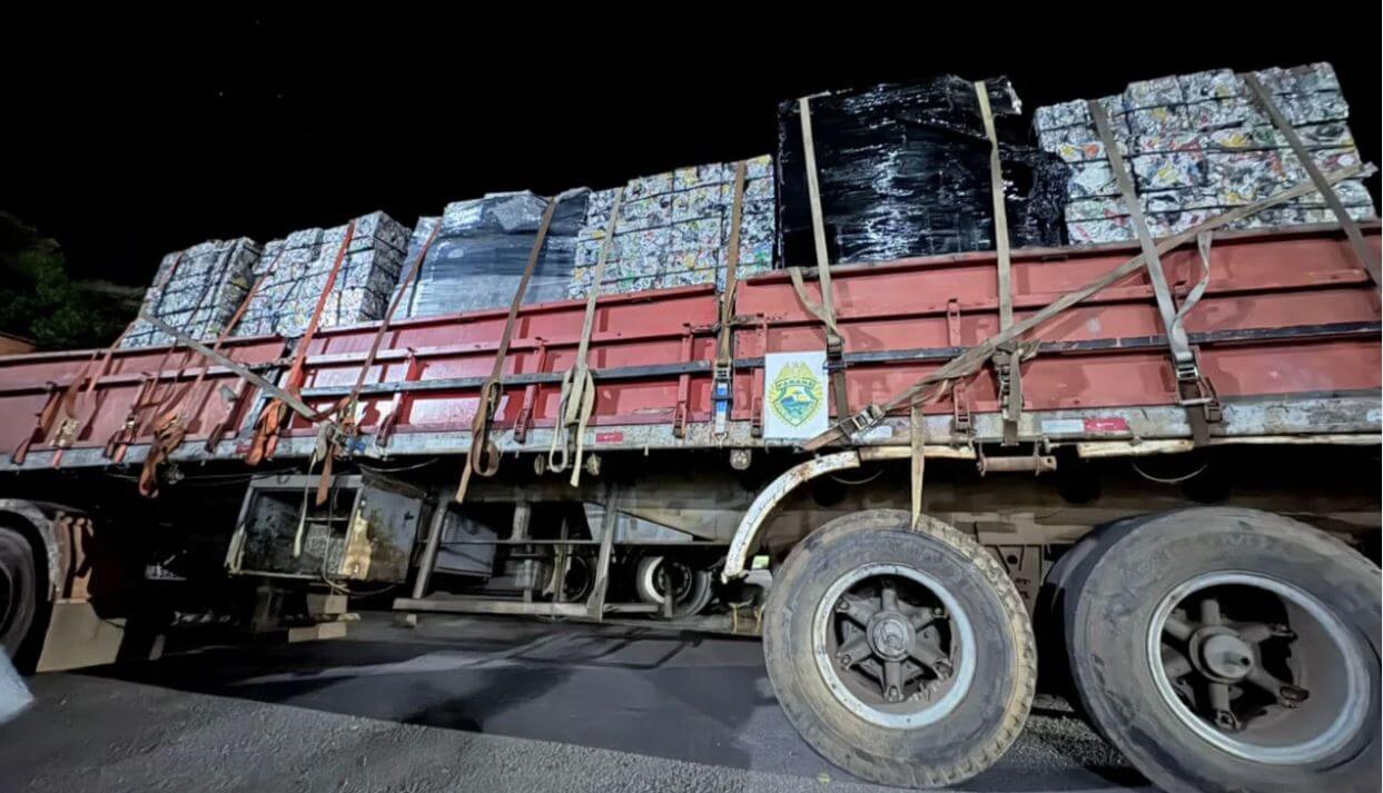 Uma ação integrada das equipes de Inteligência da Polícia Militar do Paraná e de Santa Catarina apreendeu, na noite de sábado (07), um caminhão com várias toneladas de alumínio reciclável transportado de forma ilegal para o Brasil.