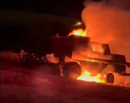 De acordo com informações preliminares, a máquina agrícola estava em operação no momento em que o incêndio começou