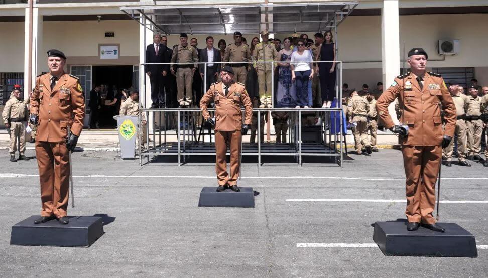 Na sequência, os comandantes sucedido e sucessor realizaram a revista à tropa, em um momento simbólico que reforça a continuidade da missão institucional da Polícia Militar do Paraná