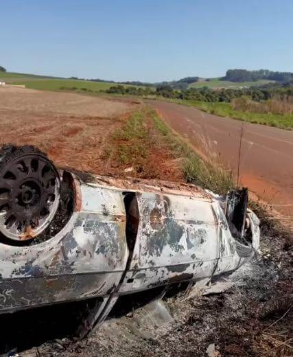 De acordo com as primeiras informações, um veículo VW Gol saiu da pista por volta das 00h40, em uma estrada rural. Após deixar a via, o carro capotou e, na sequência, foi completamente consumido pelas chamas.