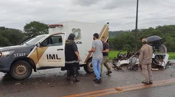 Carro desmancha após colisão frontal na PR-281 e condutor morre no local