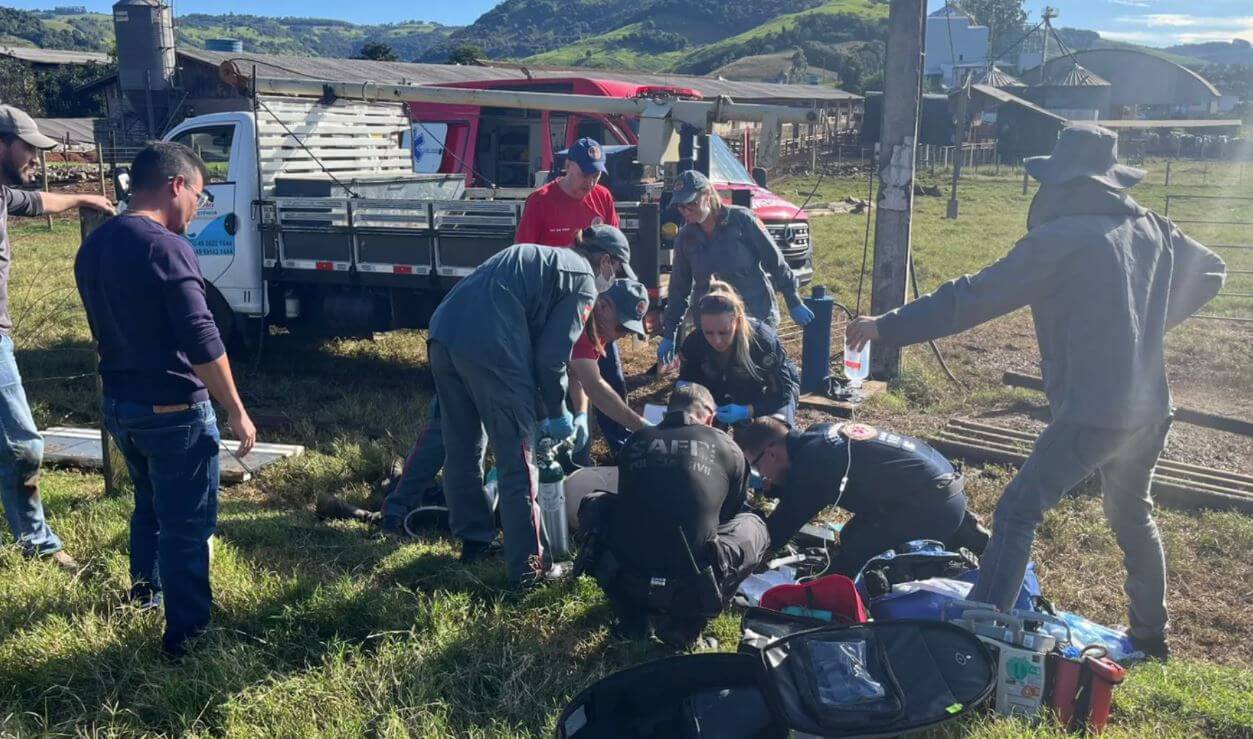 As circunstâncias da descarga elétrica não foram detalhadas e devem ser apuradas pelas autoridades competentes. O caso será investigado para esclarecer a dinâmica do acidentea Polícia Civil, com atuação da equipe do SAER-Fron, em conjunto com o SAMU Aeromédico, para atendimento de urgência no local.