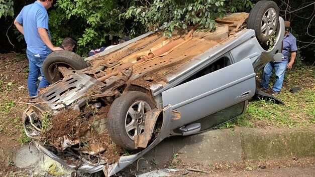O acidente envolveu um Astra emplacado em Itapejara do Oeste (PR) que capotou após o condutor perder o controle do veículo.