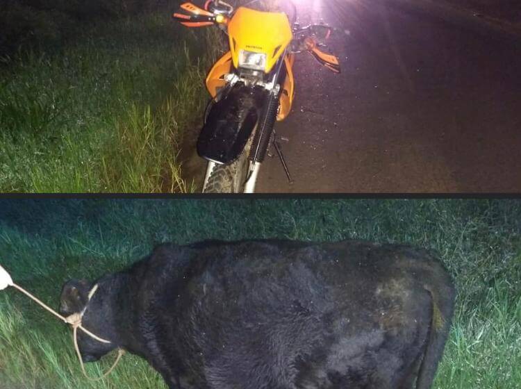 O animal com o qual a motocicleta se chocou não tinha número de identificação. Ele sofreu ferimento em uma das pernas. O número de um dos outros dois bovinos foi coletado para análise sobre sua propriedade.