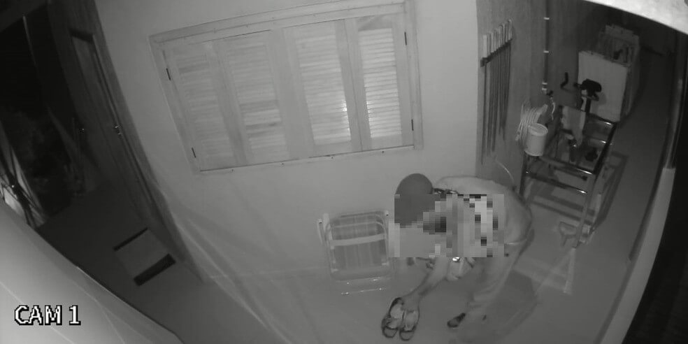 Uma câmera de segurança flagrou o momento em que um homem invadiu uma casa e furtou um botijão de gás e um tênis na madrugada de domingo (11) em Chapecó, no Oeste catarinense. Antes do crime, segundo o dono da casa, o homem permaneceu no local por cerca de 40 minutos e até dormiu no local (Conforme imagem das câmeras de monitoramento).