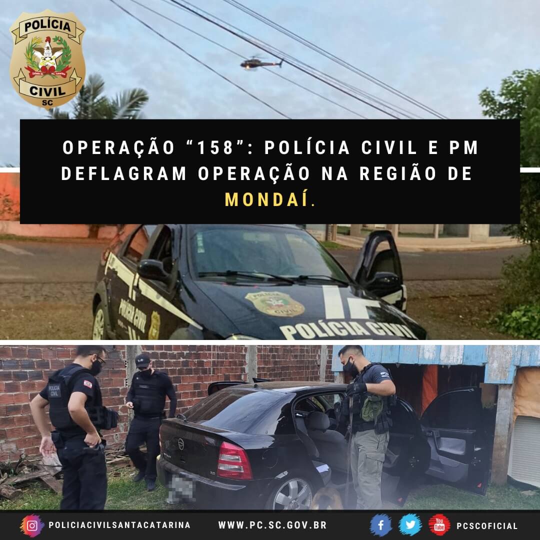 Operação 158 faz alusão à Rodovia BR-158, que é a rota de acesso aos municípios nos quais integrantes de uma facção criminosa fundada no sistema prisional gaúcho vinha atuando. A operação contou com aproximadamente 100 Policiais, visando o cumprimento de 14 mandados de busca e apreensão e seis mandados de prisão temporária, nos municípios de Mondaí, Riqueza, Maravilha, Palmitos e Cunha Porã.