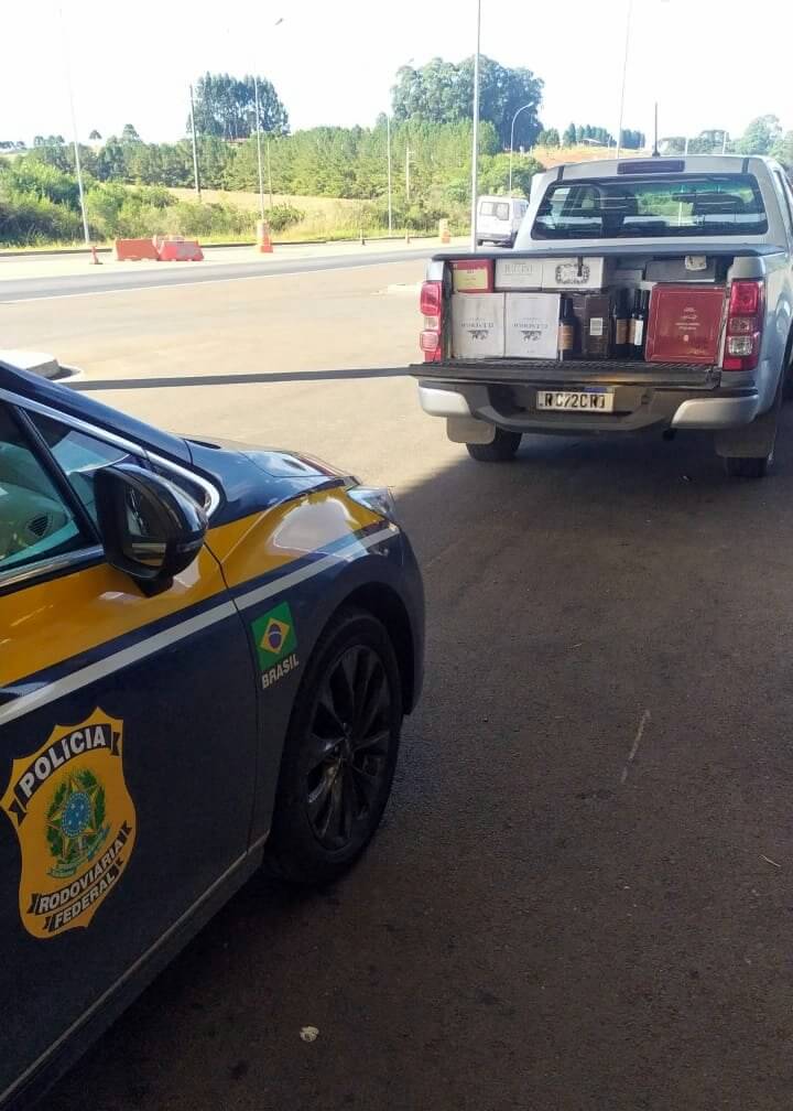 As caixas contendo as garrafas estavam no compartimento de carga de uma picape GM/S10 de Belo Horizonte/MG. Veículo de locadora. O motorista e o passageiro disseram que revenderiam a carga no litoral catarinense. Segundo eles, a mercadoria é avaliada em R$ 15 mil. Os dois foram liberados, mas vão responder pelo crime fiscal de descaminho.