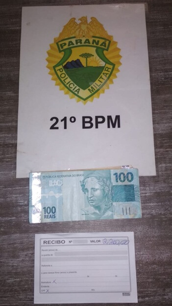 A Polícia Militar do 21º BPM recebeu denúncia no inicio da madrugada deste sábado (22), de que um homem estava tentando passar notas falsas de R$ 100,00 em estabelecimentos comerciais nas margens da PR-483.