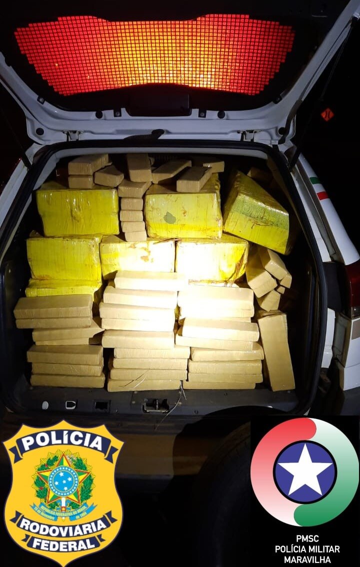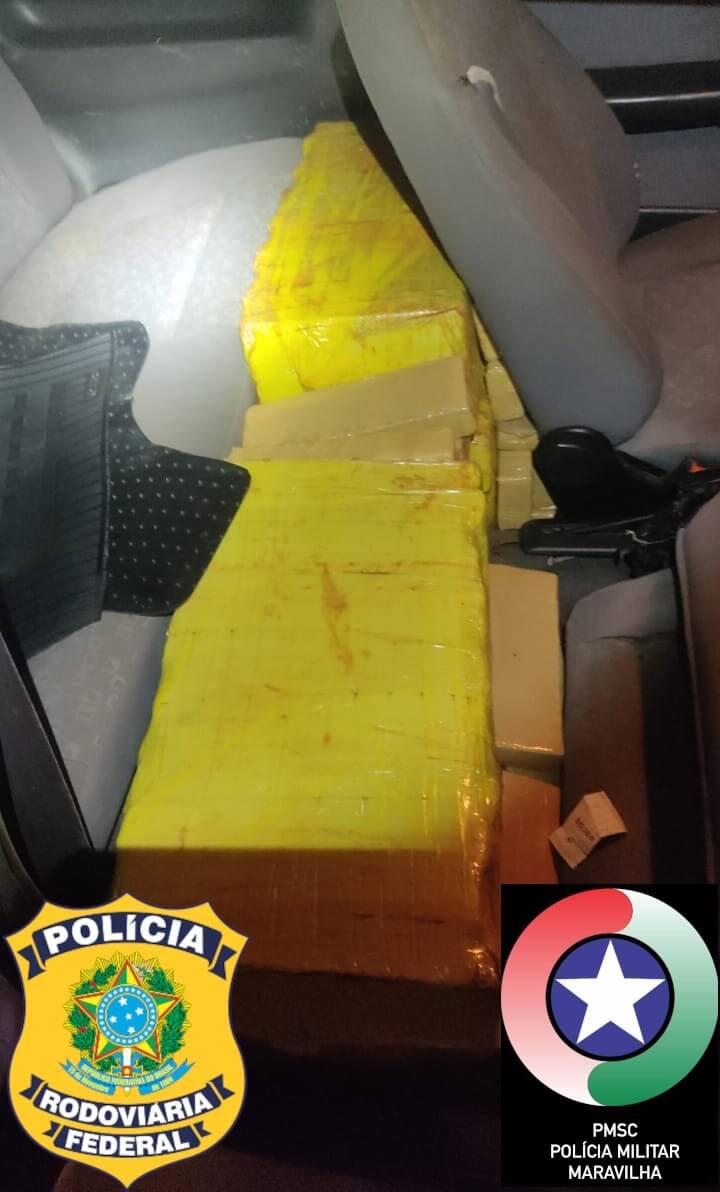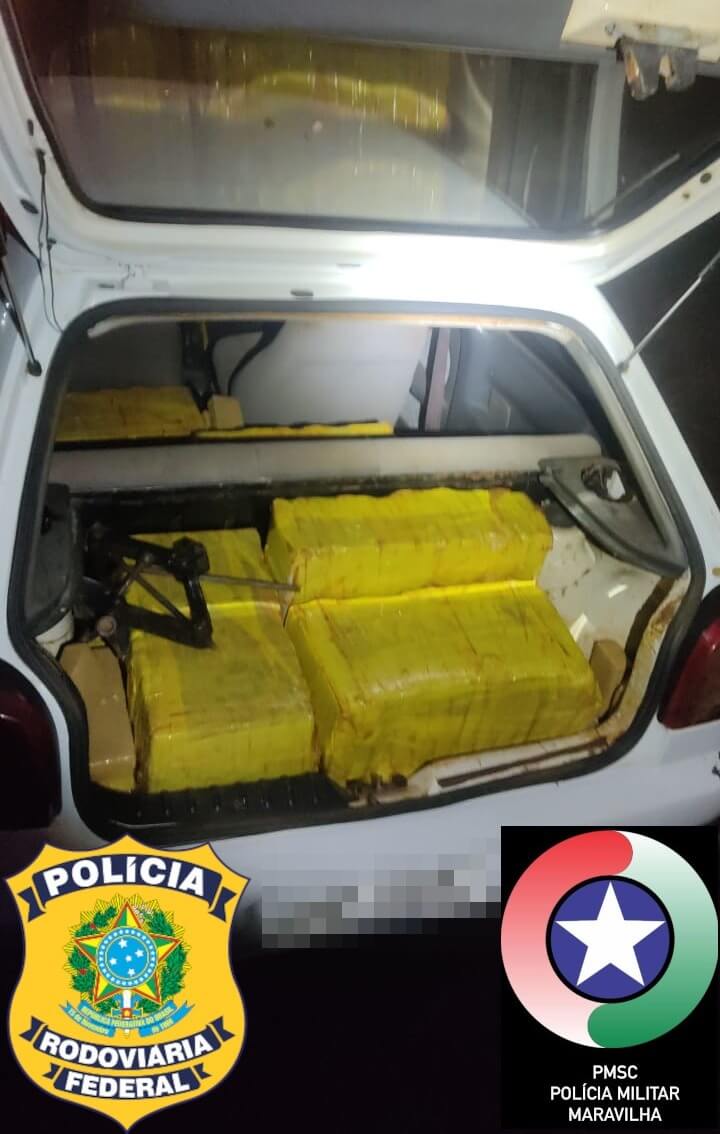 Os fardos com tabletes de maconha ocupavam todo o porta-malas e banco traseiro do Gol. O veículo foi levado à Delegacia de Polícia de Maravilha para registro da ocorrência.