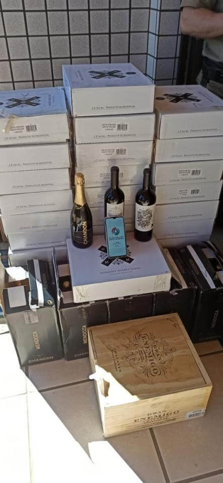 Próximo ao meio dia um veículo foi abordado no interior do município, e em busca veicular foram localizadas 29 caixas de vinho e espumantes, em um VW/Gol, em ato continuo um GM/Celta foi abordado no mesmo local, e dentro do veículo continha 38 caixas de vinho, ambos sem desembaraço aduaneiro.