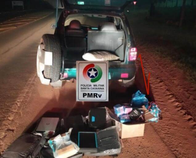 Ao revistarem um veículo os policiais encontraram produtos do Paraguai, sem o devido desembaraço aduaneiro e acima da cota permitida por lei, de 500 dólares.