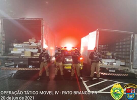 Os caminhões e a mercadoria foram apreendidos e encaminhados a Receita Federal.