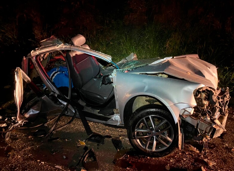 Carro e ônibus com 42 passageiros se envolvem em grave acidente na BR-158 em Caibi