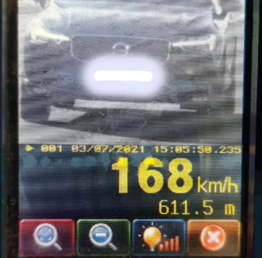 Um carro foi flagrado a 168 km/h em uma rodovia de Santa Catarina onde a velocidade máxima permitida é de 80 km/h, na tarde do último sábado, dia 3, em Criciúma.