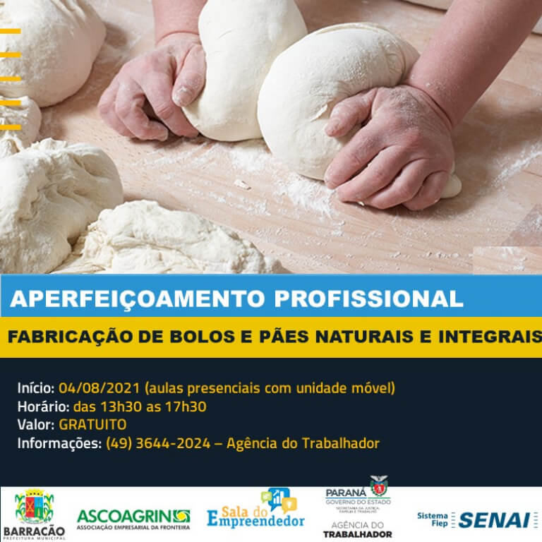 Desta forma, o curso de qualificação, nas áreas de panificação e confeitaria, será focado apenas para os MEIs e a população de Barracão.