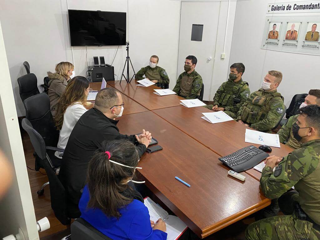 Na terça-feira, (27/07) policiais militares do BPFRON - Batalhão de Polícia de Fronteira se reuniram com os membros do Centro de Excelência para Redução de Oferta de Drogas Ilícitas da SENAD - Secretaria Nacional de Políticas sobre Drogas, do Ministério da Justiça e Segurança Pública, na sede do Batalhão em Marechal Cândido Rondon/PR.