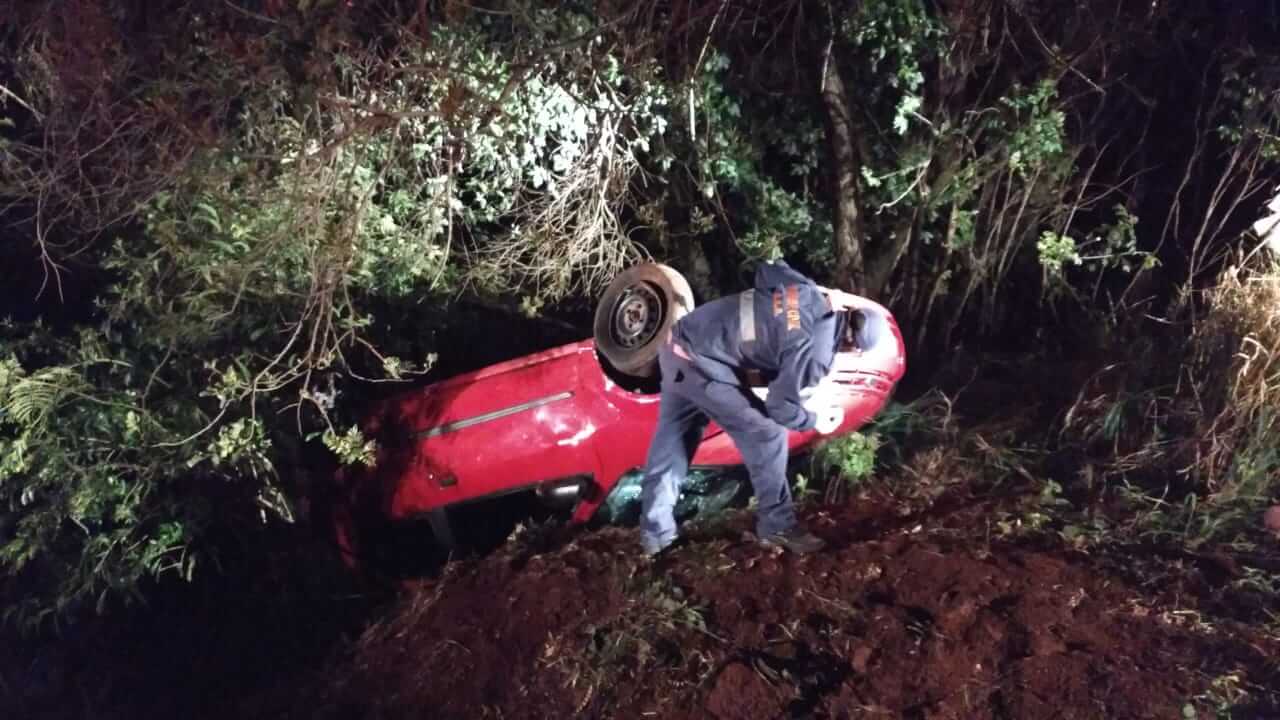 Um veículo Ford/Ka emplacado em São Miguel do Oeste (SC), saiu da pista e capotou na noite desta quinta-feira (9), na rodovia BR-163, entre Santo Antônio do Sudoeste e Pranchita.