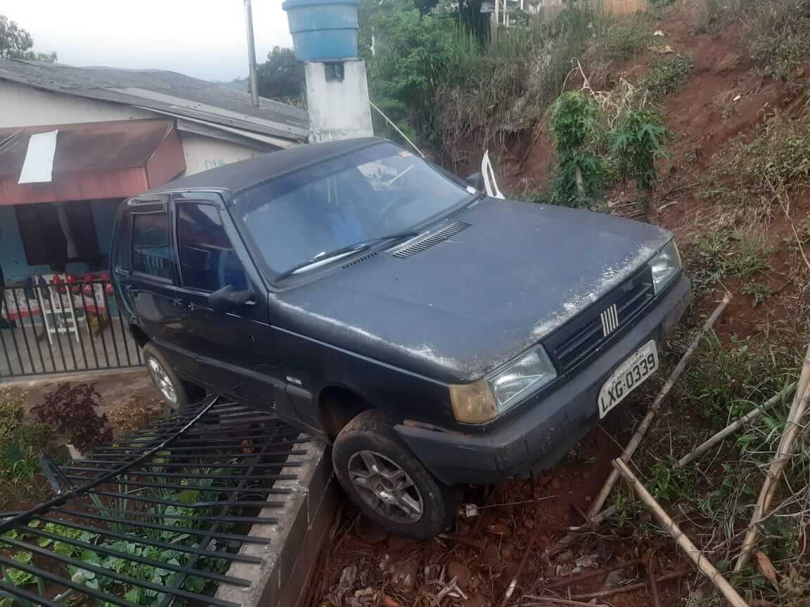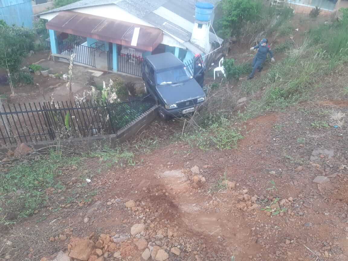 No local havia um veículo da Fiat/Uno, cor azul que saiu fora da pista, desceu o barranco e parou em cima do muro do vizinho.