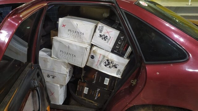 Policiais rodoviários federais flagraram na noite desta terça, 21, na BR 163 em Guaraciaba, cerca de 570 garrafas de vinho de origem argentina importadas irregularmente.