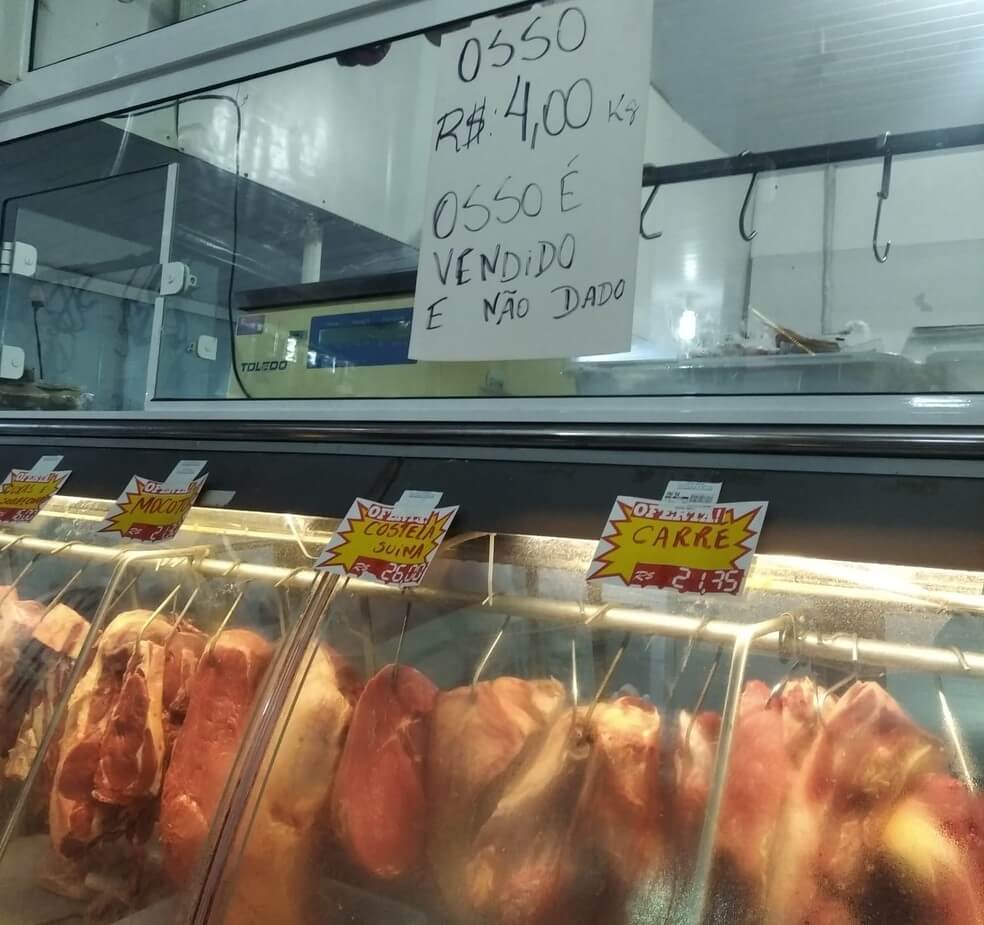 A venda do osso de boi foi a alternativa para manter a venda de carnes. De acordo com ele, a procura pelo item começou a aumentar há cerca de um ano. Apesar do anúncio da venda, o comerciante disse à reportagem que doa o produto quando uma pessoa necessitada pede doação.