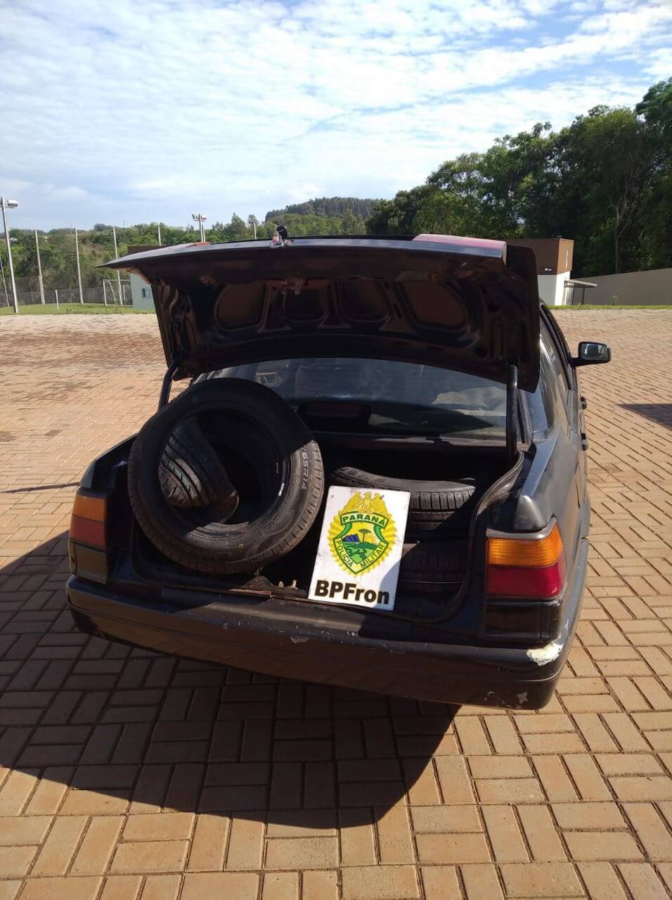 BPFRON apreende pneus contrabandeados em veículo na cidade de Capitão Leônidas Marques