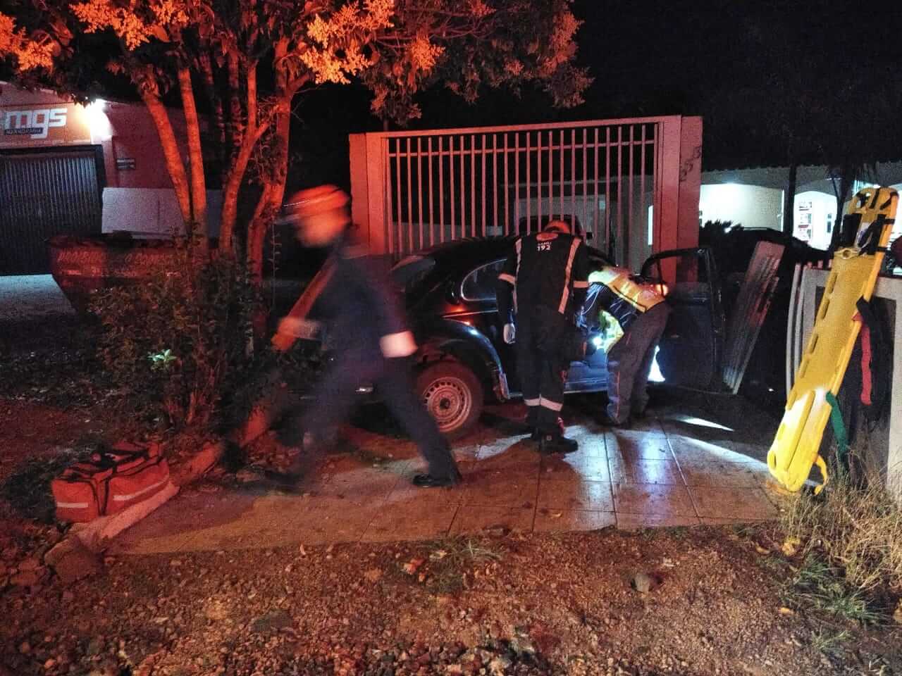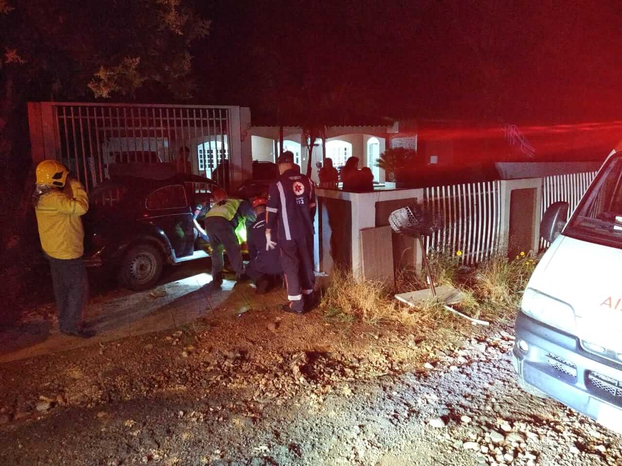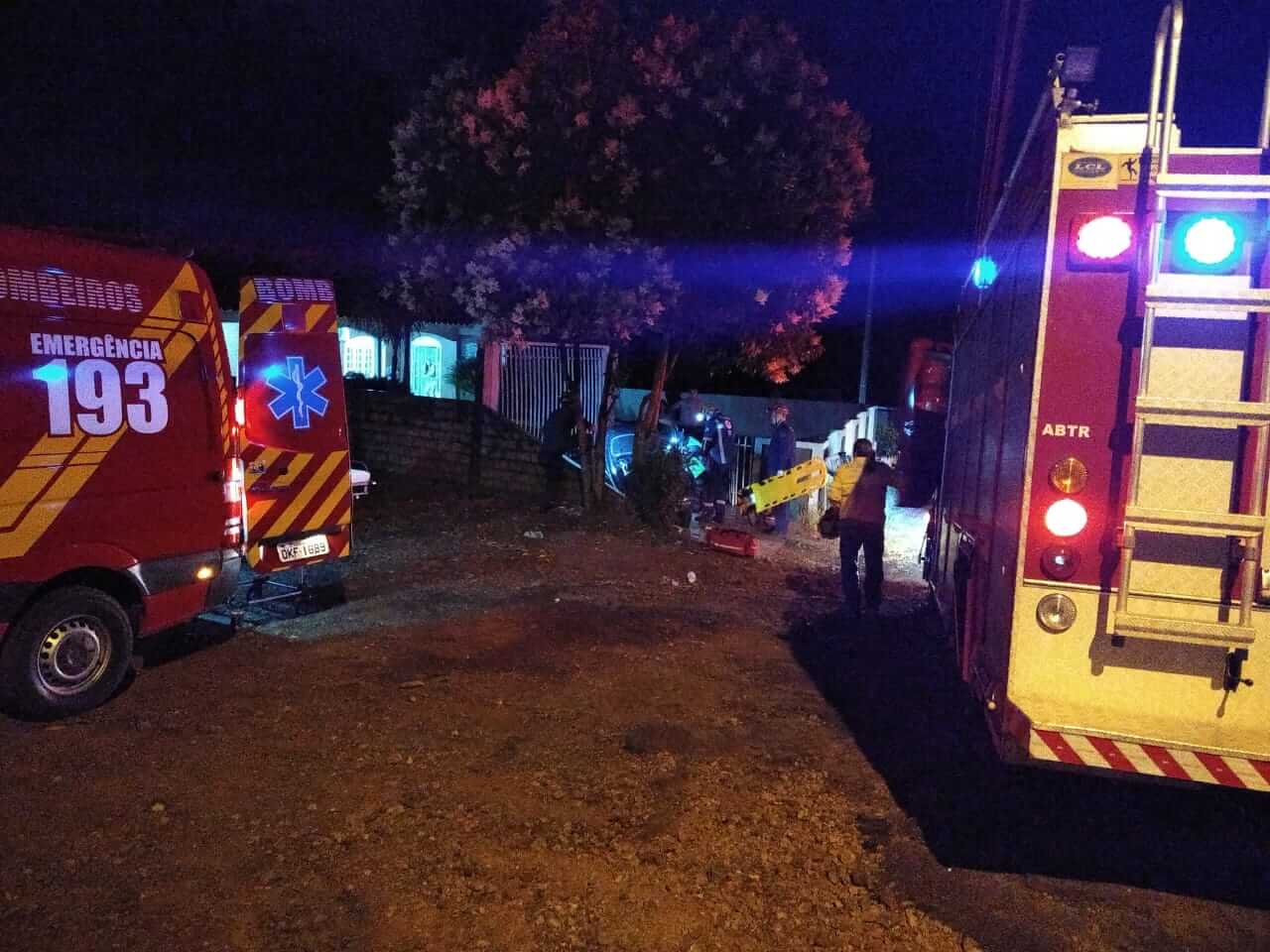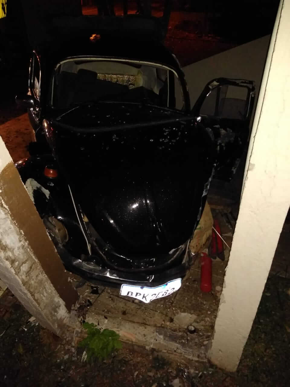 No local, os socorristas encontraram um masculino de 38 anos dentro do veículo Volkswagen Fusca que teria saído da pista e batido contra o muro de uma residência.