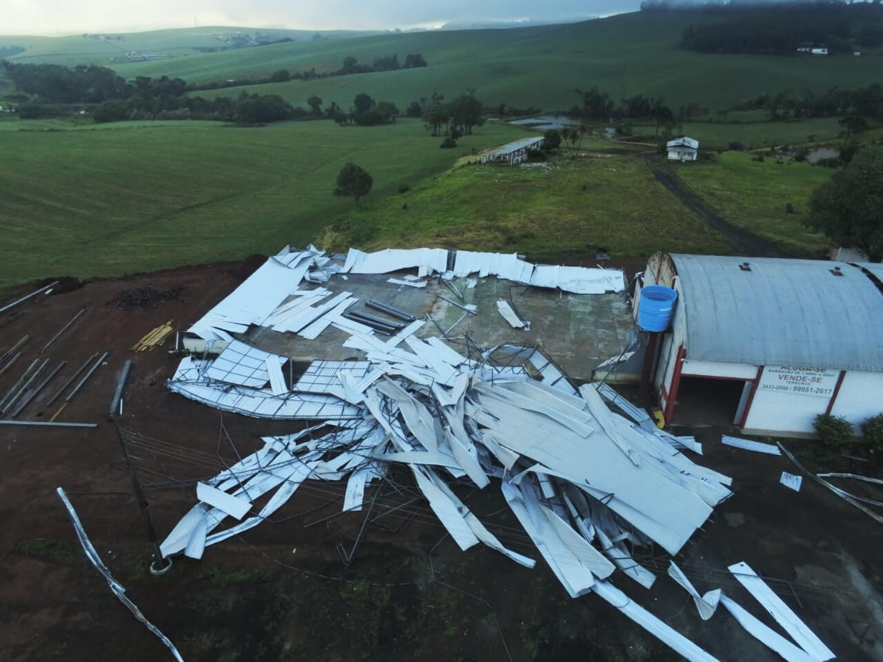 Os maiores danos aconteceram no interior de Tangará, Xanxerê e Itapiranga, após ocorrência de temporais com vendaval e granizo.