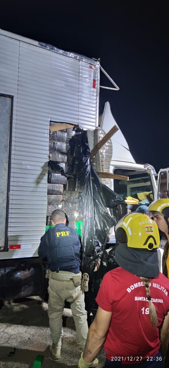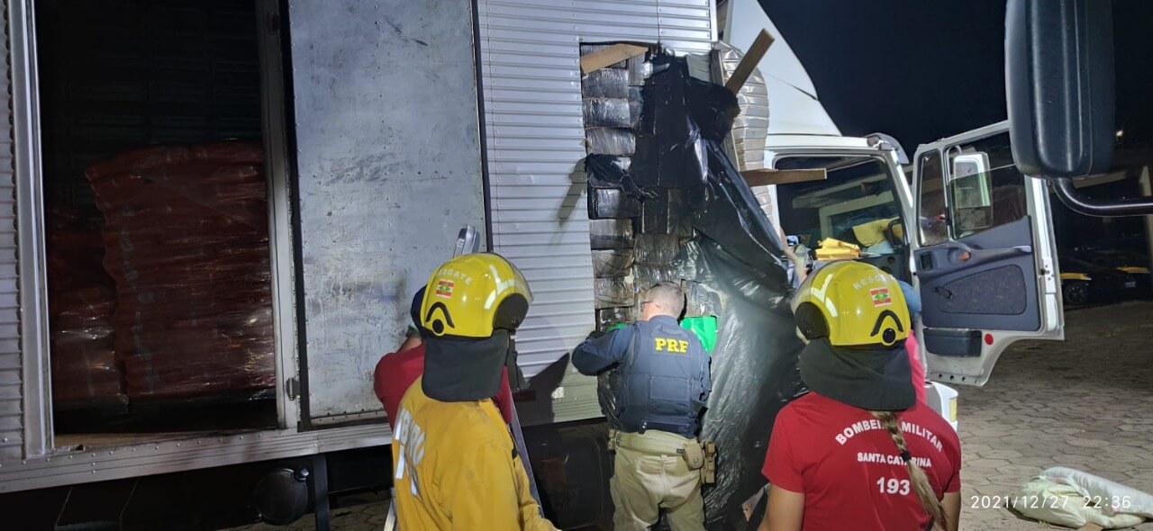 Na noite de ontem (27), policiais rodoviários federais apreenderam 2,1 toneladas de maconha escondidas no fundo falso de um caminhão na BR 480 em Chapecó.