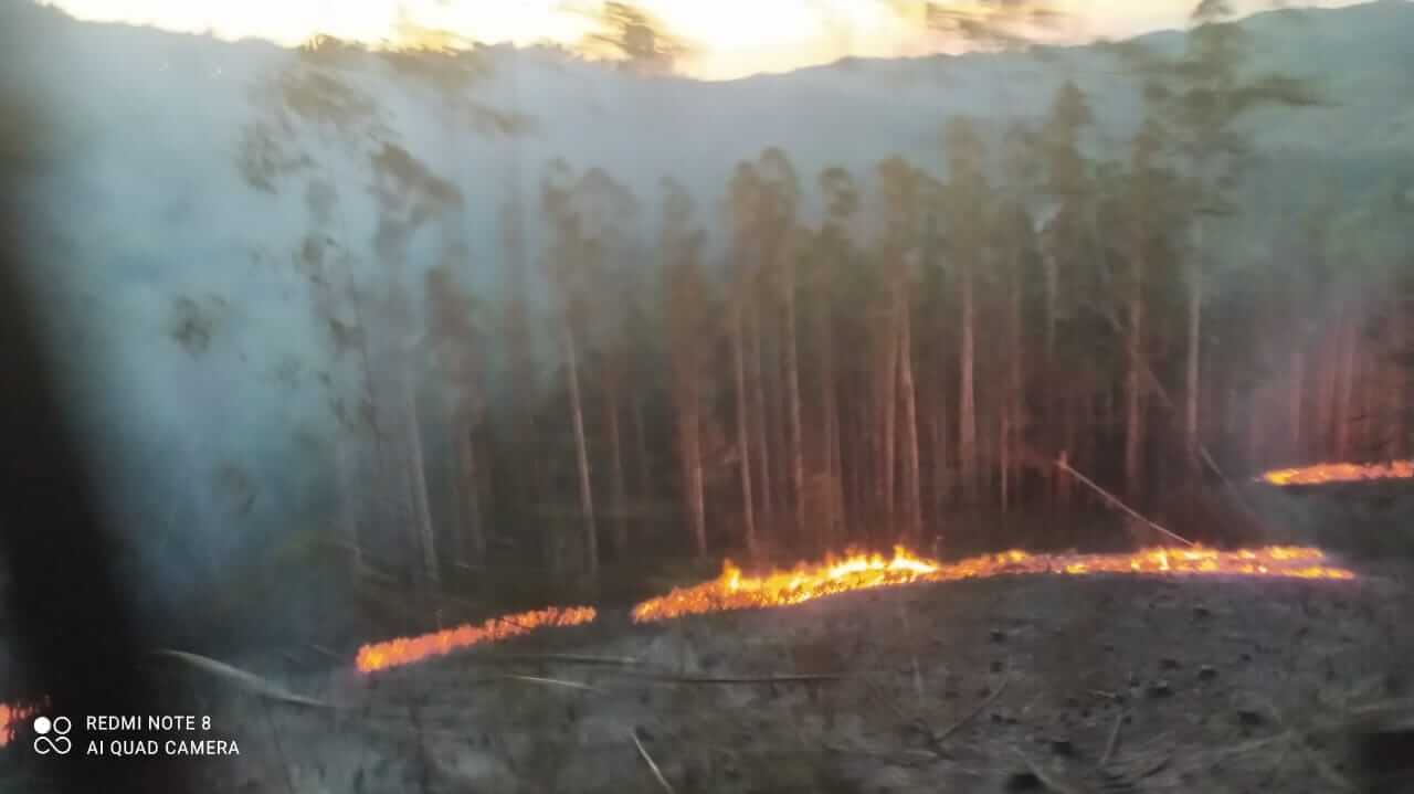 Os combatentes foram acionados por volta das 15h45 desta terça-feira (28), para ocorrência de incêndio em reflorestamento de eucaliptos na Linha São Roque, interior daquele município.